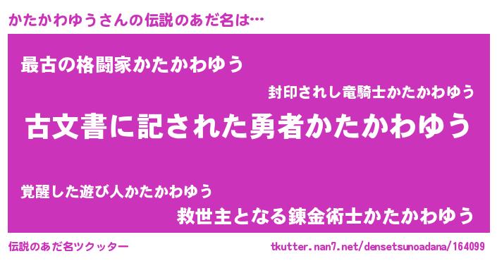 | ヒーロー風カッコイイあだ名 | 『ネオカタカワユウ』『仮面カタダー』 |