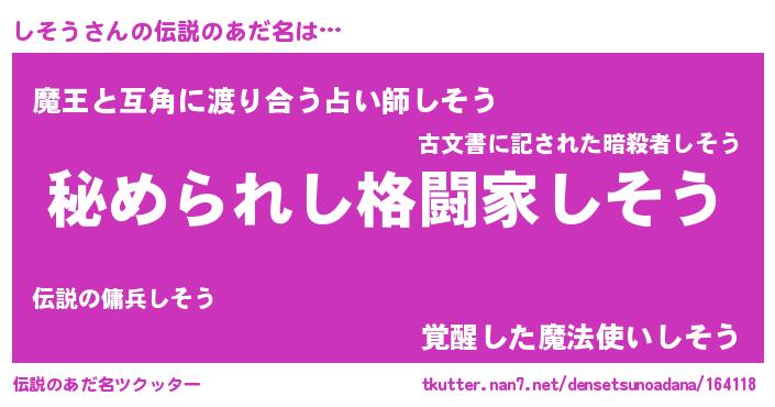| ヒーロー風カッコイイあだ名 | 『ウルトラしそうマン』『究極戦士シソウ』 |