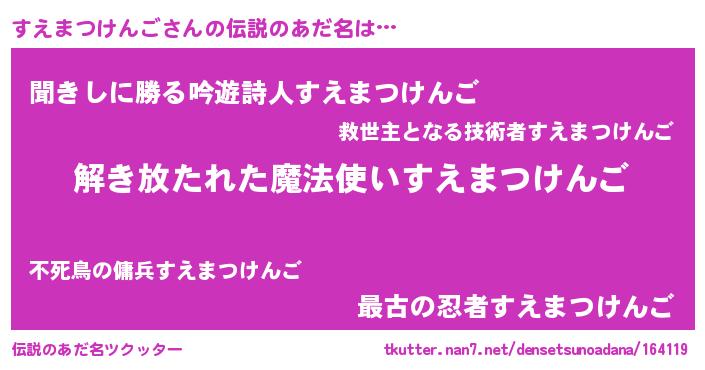 | 胡散臭い通販商品みたいなあだ名 | 『伝統あるサプリメント…その名も「すえまつけんご」』 |