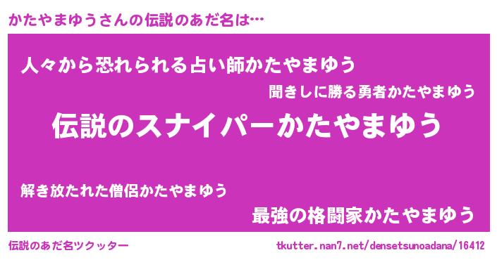 | ヒーロー風カッコイイあだ名 | 『スーパーカタヤマユウ』『仮面カタダー』 |