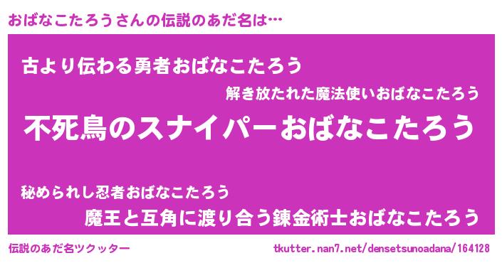 | ヒーロー風カッコイイあだ名 | 『スーパーオバナコタロウ』 |