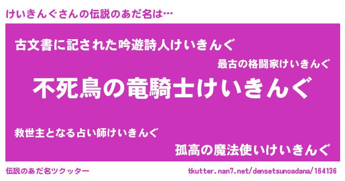 | ヒーロー風カッコイイあだ名 | 『仮面ケイダー』『スーパーケイキング』 |
