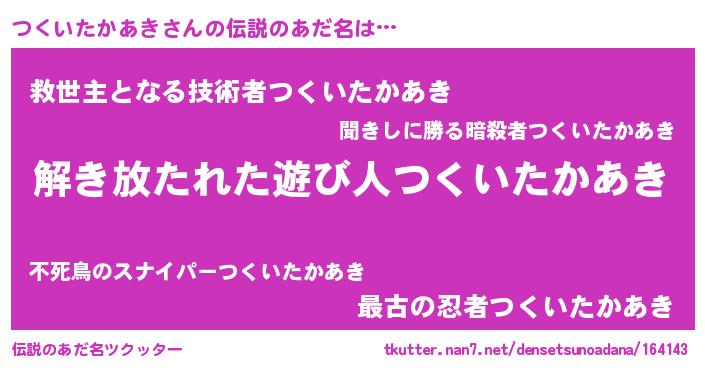 | 肩書あだ名 | 『つくいたかあきリーダー』 |