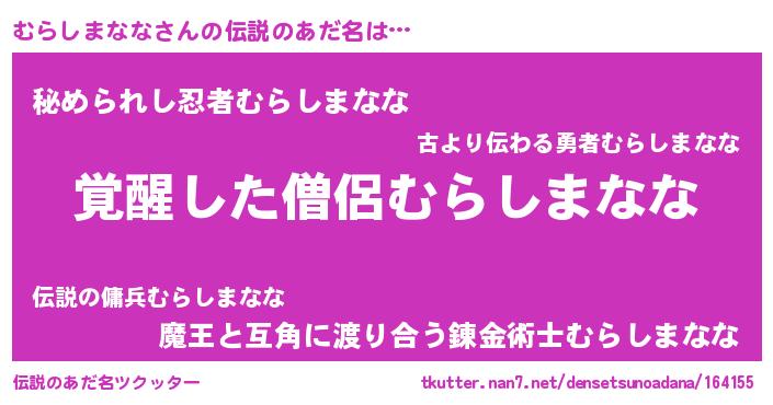 | 男性向けラノベタイトル風あだ名 | 『むらしまななの嫁は女の子じゃないと思った?』 |