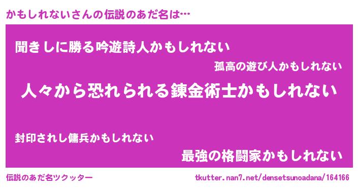 | ヘコむあだ名 | 『かもしれない(遠い目)』『なまこ酢』 |