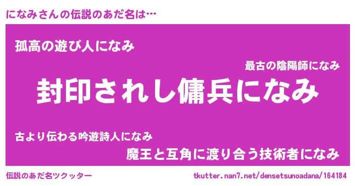 | ヒーロー風カッコイイあだ名 | 『スーパーニナミ』『仮面ニナダー』 |