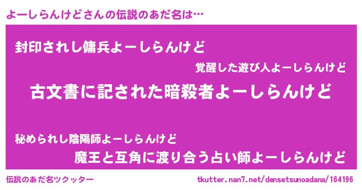 | ヒーロー風カッコイイあだ名 | 『仮面ヨーダー』『ネオヨーシランケド』 |