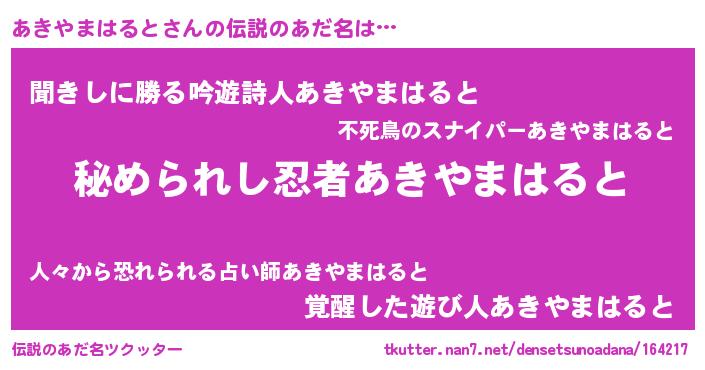 | 意味不明あだ名 | 『あきやまはるとフォーエバー』 |