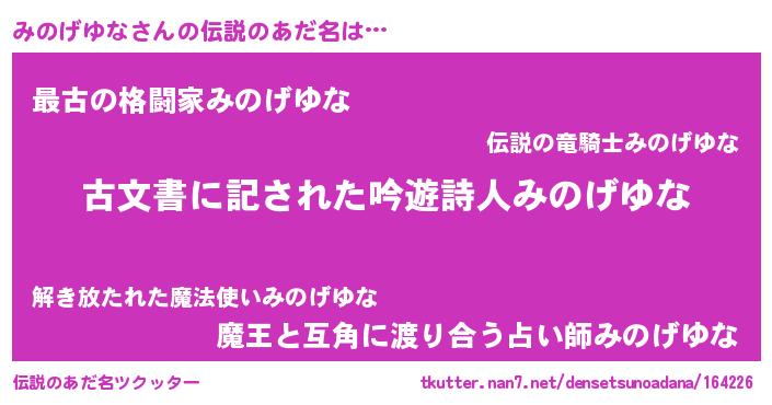 | 意味不明あだ名 | 『永久保存みのげゆな』『自称みのげゆな』 |