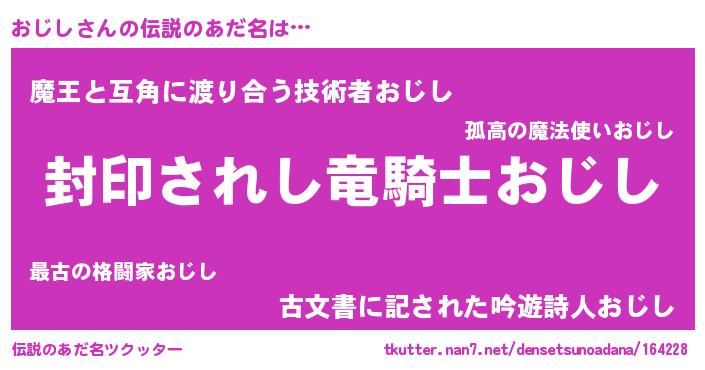 | ヘコむあだ名 | 『おじにー』『おじし(笑)』『おじお』 |