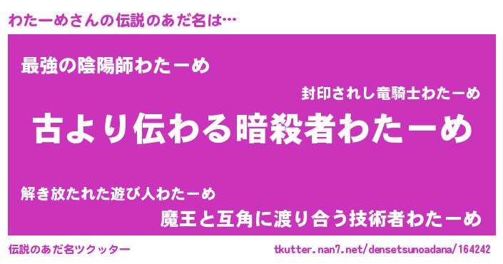 | ヒーロー風カッコイイあだ名 | 『サイバー戦士ワターメ』『ネオワターメ』 |
