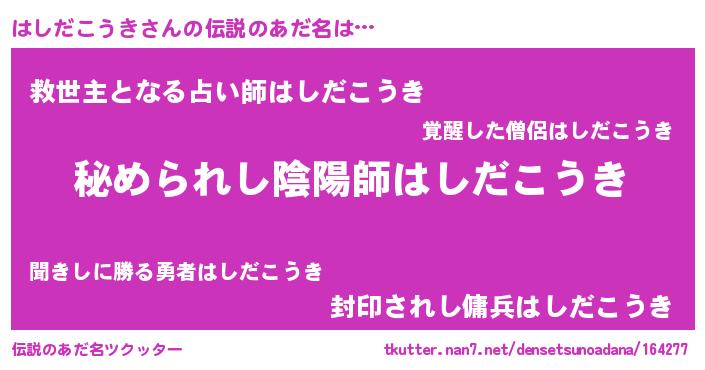 | ファンタジー風あだ名 | 『エターナルハシダコウキー』 |
