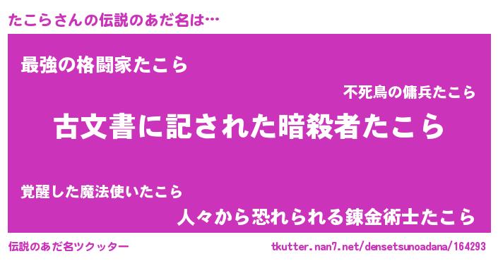 | ヒーロー風カッコイイあだ名 | 『ネオタコラ』『ウルトラたこらマン』 |