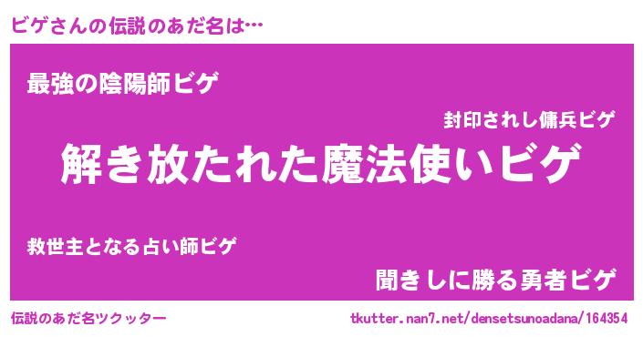 | 胡散臭い通販商品みたいなあだ名 | 『伝統あるサプリメント…その名も「ビゲ」』 |
