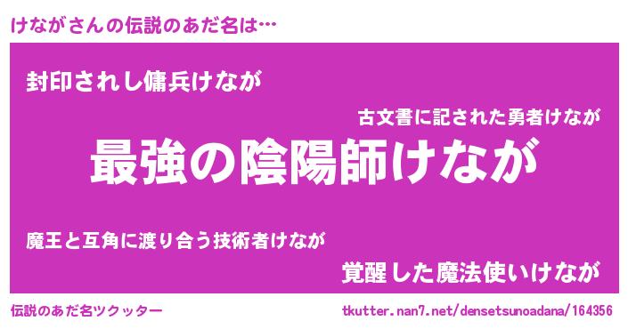 | 意味不明あだ名 | 『けながフォーエバー』『自称けなが』 |