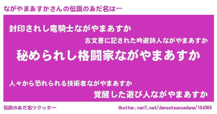 | ファンタジー風あだ名 | 『エターナルナガヤマアスカー』 |
