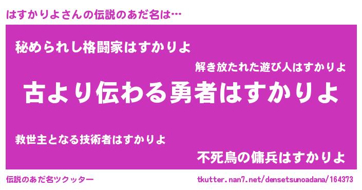 | 肩書あだ名 | 『はすかりよ上級大将』『はすかりよ先生』 |