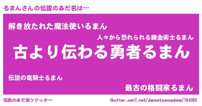| ヒーロー風カッコイイあだ名 | 『ネオルマン』『幻影騎士ルマ』 |