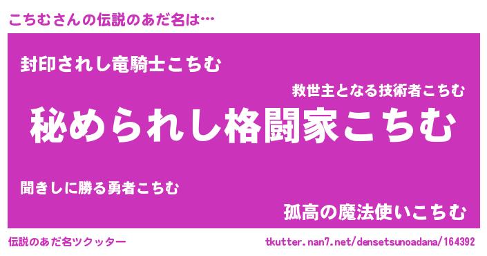 | ファンタジー風あだ名 | 『エターナルコチムー』『ゼコチトゥ』 |