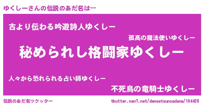 | 意味不明あだ名 | 『自称ゆくしー』『ゆくしーフォーエバー』 |