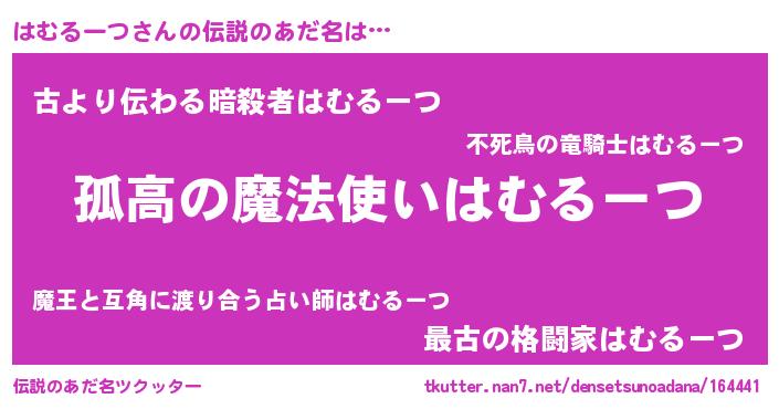 | 女子向けラノベタイトル風あだ名 | 『はむるーつは平凡を望む』 |