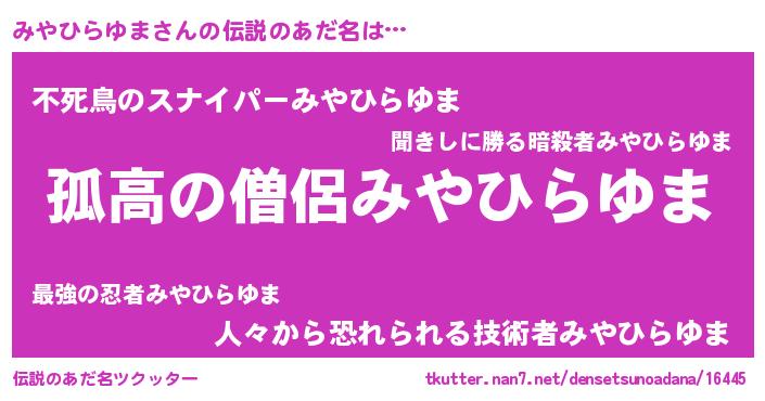 | 意味不明あだ名 | 『とにかく怪しいみやひらゆま』 |