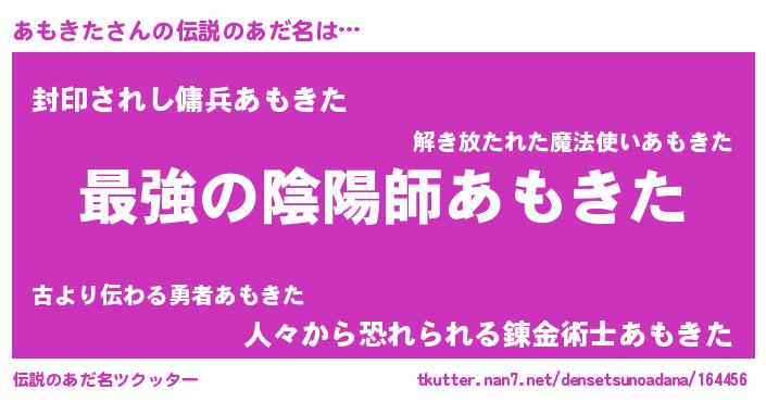 | 男性向けラノベタイトル風あだ名 | 『あもきた~年齢イコール彼女いない歴の魔法使い~』 |