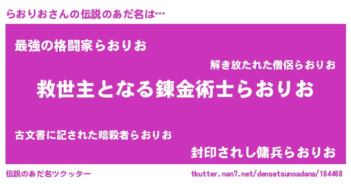 | 男性向けラノベタイトル風あだ名 | 『ノーゲーム・ノーラオリオ』 |