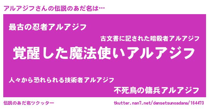 | ポケモン風あだ名 | 『アルゴンZ』『ヒアルアジフ』 |