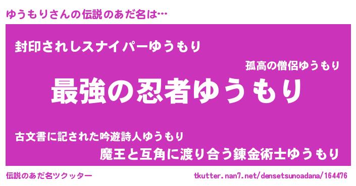 | 胡散臭い通販商品みたいなあだ名 | 『あなたにだけ特別に提供する限定10本のレアな日本酒…その名も「ゆうもり」』 |