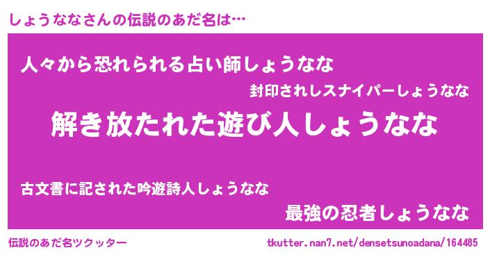 | 男性向けラノベタイトル風あだ名 | 『転生したらしょうななだった件』 |