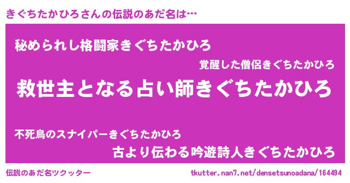 | ヒーロー風カッコイイあだ名 | 『慈愛の使者きぐちたかひろ』 |