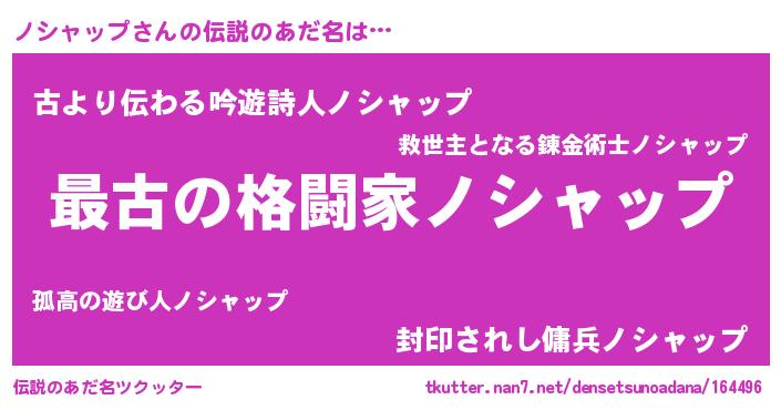 | 意味不明あだ名 | 『ノシャップフォーエバー』 |
