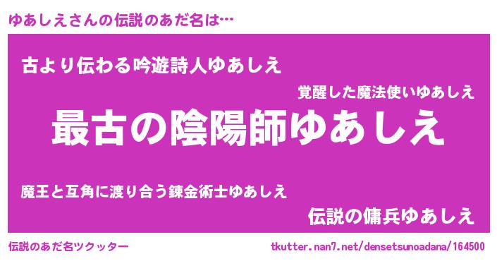 | 意味不明あだ名 | 『ゆあしえフォーエバー』 |