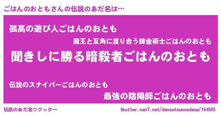| ファンタジー風あだ名 | 『ゴハディッシュ』『ゼゴハトゥ』 |