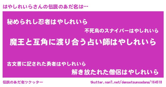 | 意味不明あだ名 | 『住所不定無職はやしれいら(39歳)』 |