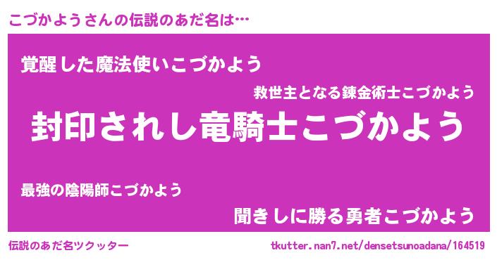| ヒーロー風カッコイイあだ名 | 『スーパーコヅカヨウ』『炎刃騎士コヅ』 |