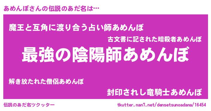| 男性向けラノベタイトル風あだ名 | 『Re:あめんぼから始める異世界生活』 |