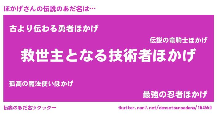| ヒーロー風カッコイイあだ名 | 『究極戦士ホカゲ』『愛の使者ほかげ』 |