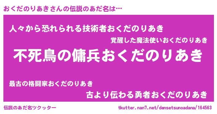 | 男性向けラノベタイトル風あだ名 | 『オクダノリアキアートオンライン』 |