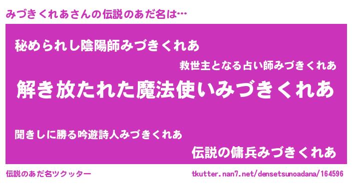 | ヒーロー風カッコイイあだ名 | 『魔戒騎士ミヅ』『スーパーミヅキクレア』 |