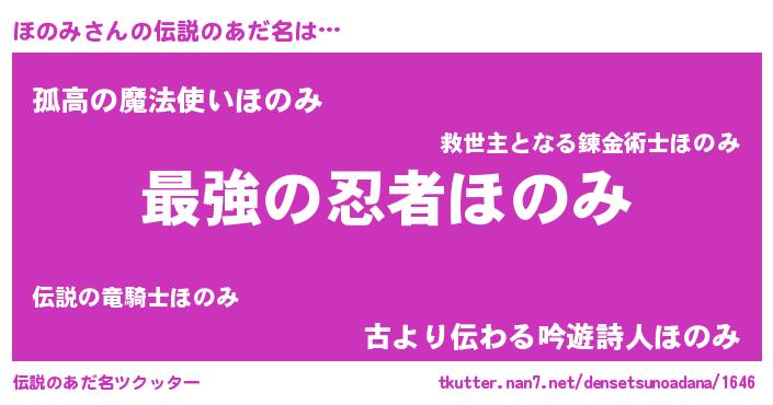 | 女子向けラノベタイトル風あだ名 | 『ほのみの婚約者』『ほのみは平凡を望む』 |
