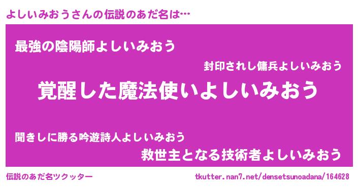 | 男性向けラノベタイトル風あだ名 | 『よしいみおうの嫁は女の子じゃないと思った?』 |