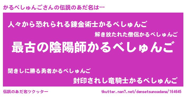 | 男性向けラノベタイトル風あだ名 | 『魔弾の王とかるべしゅんご』 |