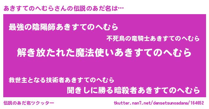 | 意味不明あだ名 | 『とにかく怪しいあきすてのへむら』 |