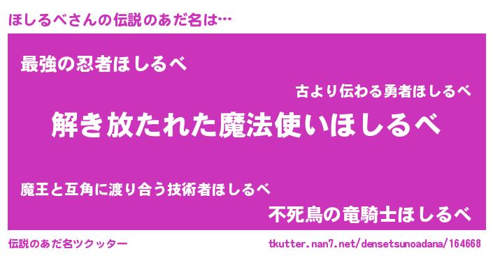 | 意味不明あだ名 | 『とにかく怪しいほしるべ』 |