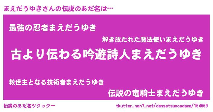 | ヒーロー風カッコイイあだ名 | 『ネオマエダウユキ』『銀牙騎士マエ』 |