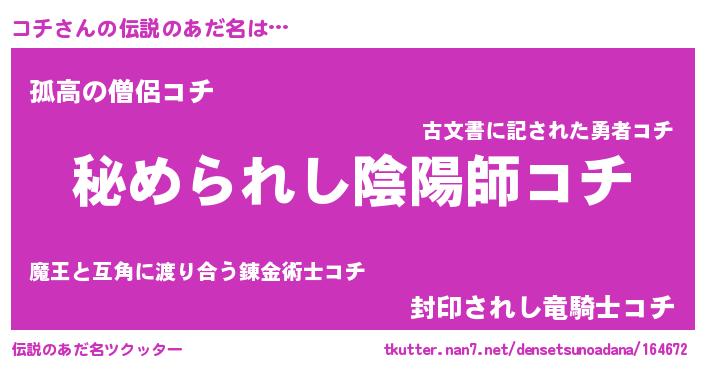 | ファンタジー風あだ名 | 『エターナルコチー』『ファントムコチス』 |