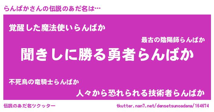 | 男性向けラノベタイトル風あだ名 | 『らんばかという概念が存在しない退屈な世界 』 |