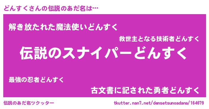 | ヒーロー風カッコイイあだ名 | 『スーパードンスク』『天弓騎士ドン』 |